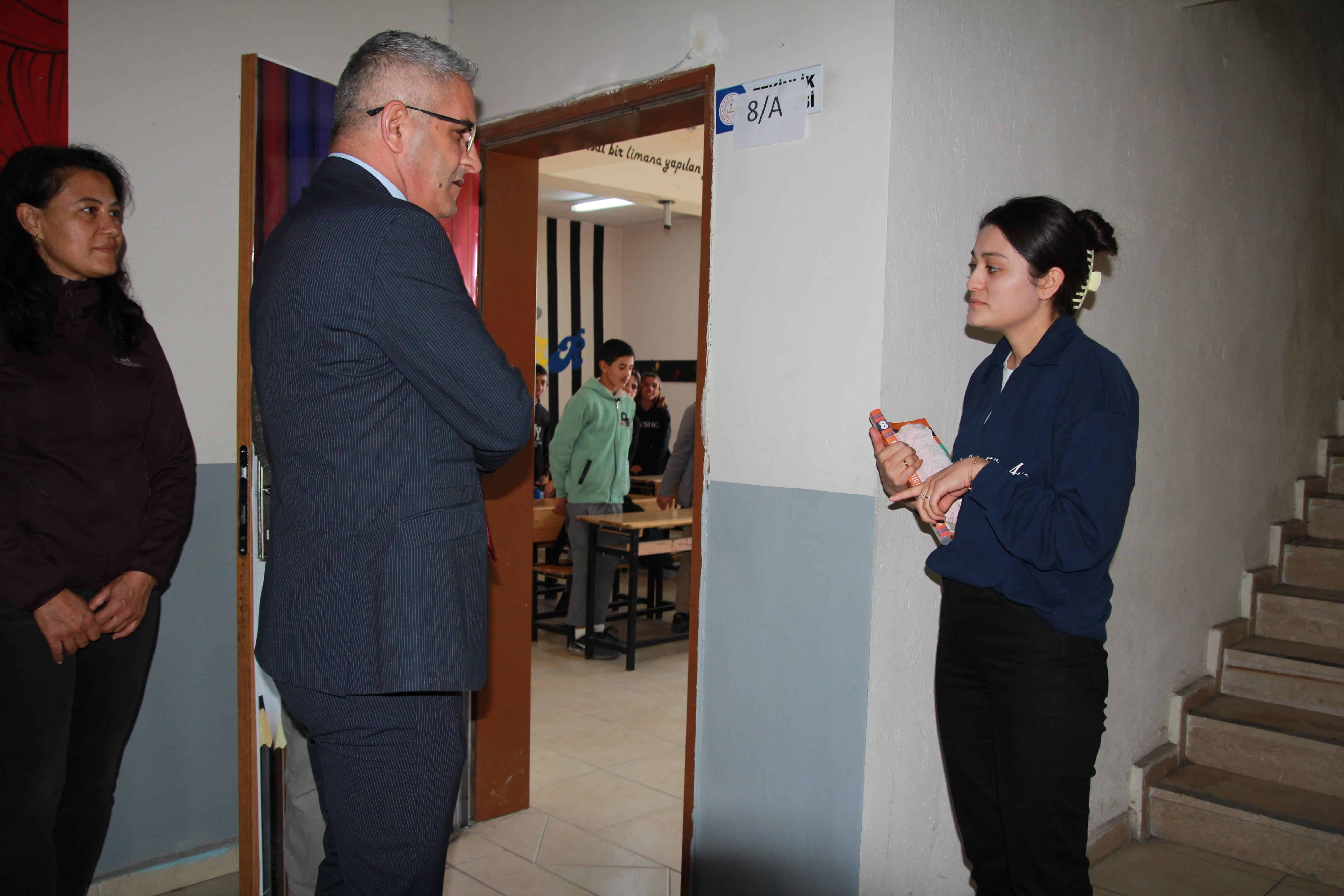 İlçe Milli Eğitim Müdürümüz Davut ŞEN, sabahın ilk ışıklarıyla birlikte okullara sürpriz ziyaretler gerçekleştirdi. Ziyaretlerine Çetenli İlkokulu ve Ortaokulu'nda düzenlenen törenlere katılarak başlayan Müdürümüz, daha sonra Ortakent, Başkent ve Dağdelen ilkokullarını ziyaret etti. Ziyaretleri sırasında sınıfları tek tek gezerek öğrencilerle birebir ilgilendi, onlara günün ilk "günaydın"ını bizzat iletti. Okul yönetimi ve öğretmenlerle görüşerek desteklerini sunan Müdürümüz, okulların ihtiyaç ve eksiklerini yerinde inceledi.